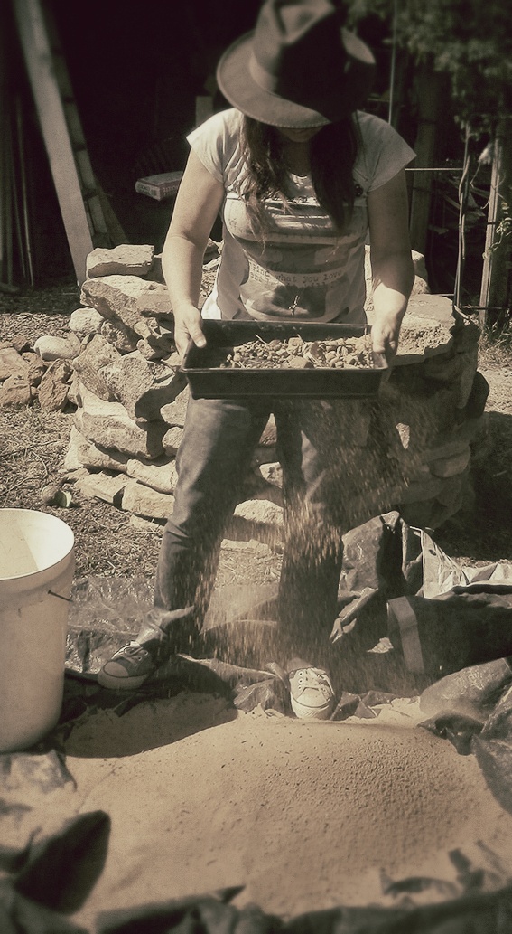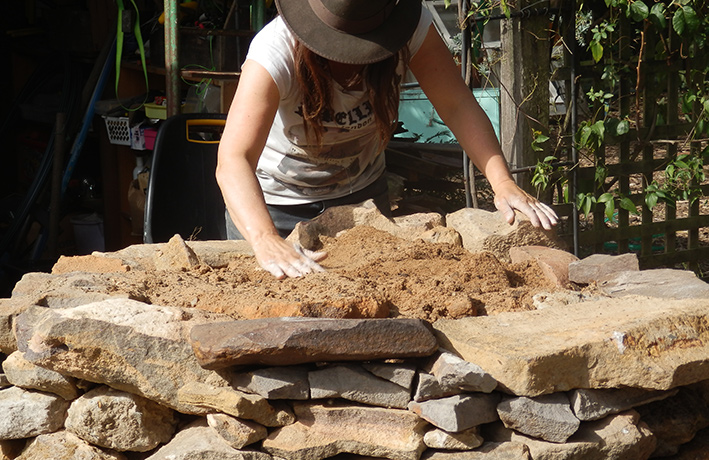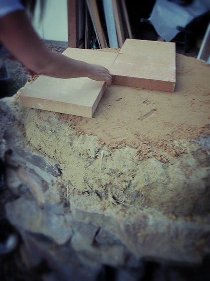 This took us a while as we just used wine bottles that we were consuming. A much quicker way would be to rally the neighbours. Once your floor is full to capacity you then need to put in sand. We sifted sand found from a local back dirt road (the sand should be clean and fine), and poured in all over the wine bottles until we had a beautifully flat surface. Keep an eye on the level at all stages. This step needs to be done when you have your firebricks. As any rain, pressure or anything touching this level and you will need to start again. We ordered our firebricks from a place in Sydney – Sydney Fire Bricks, who were great and extremely helpful. These were the most expensive part of the whole build (in fact the only real thing we needed to buy). Here is their website to check out if you live in Australia.