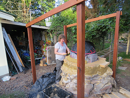 Create the wet sand dome, damp newspaper and first layer of cob on the same day.