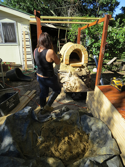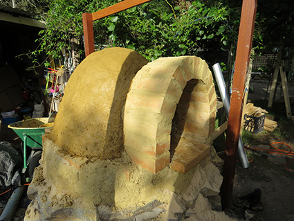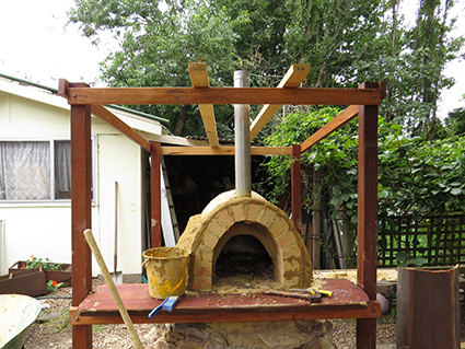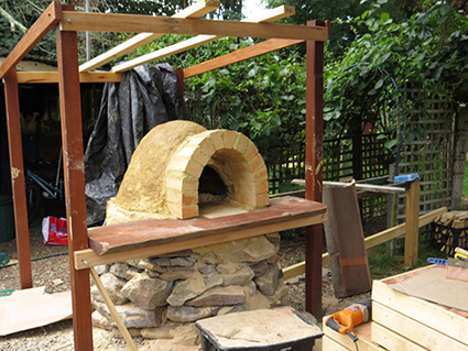 When we thought we had our final layer (complete with some dodgy mosaic) we started our first fire and cooked our first pizza. Which is our next stage. – It should be said though that after that we put on another layer – as cracks started to appear when the oven was fully fired up. Since then we have filled in cracks and added 1 or 2 small layers. It now heats up brilliantly – holds the heat and cooks pizzas in a couple of minutes. Next step – starting your first fire!